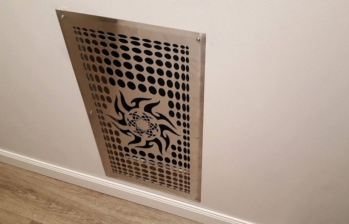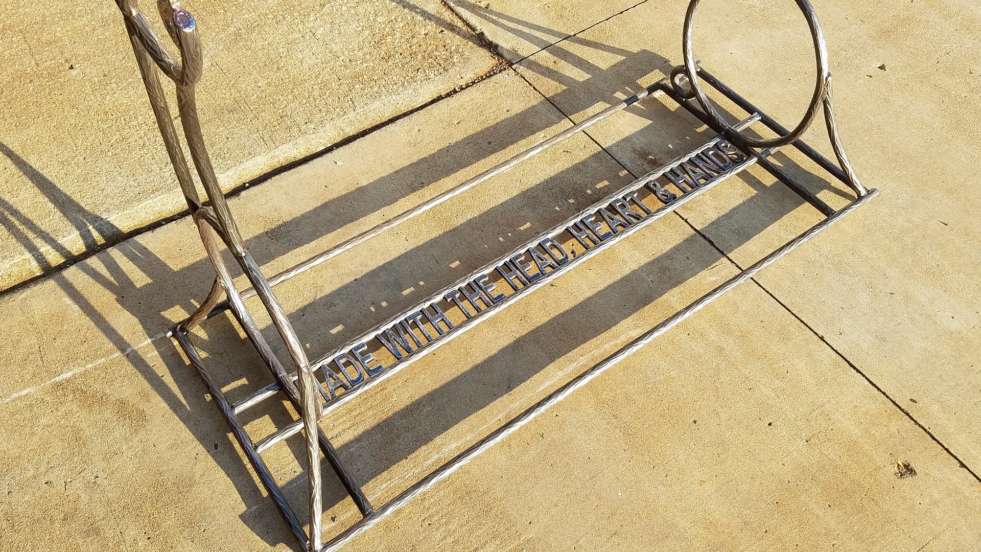 Our machine is a Torchmate X, manufactured by a division of Lincoln Electric, a long-standing brand known for quality and dependability. The cutting power is provided by a Hypertherm 105 plasma machine. The machine features an air operated water table, which is raised up to the bottom of the metal being cut. The water absorbs most of the smoke and debris produced by plasma cutting, as well as keeping the metal cool, which helps prevent heat warpage. We add a biodegradable anti-rust/corrosion solution to our water.