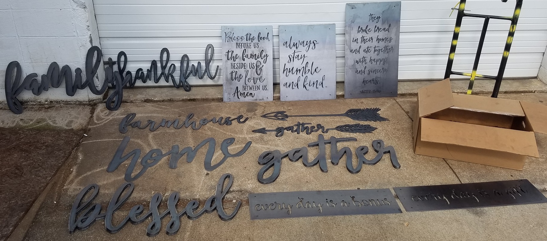 We have thousands of cut files already on hand, for decorative metal items, fire rings, driveway signs, business signs, specialty items, etc., in the following themes...Size can be adjusted from a few inches to up to 10 or 12 feet wide: